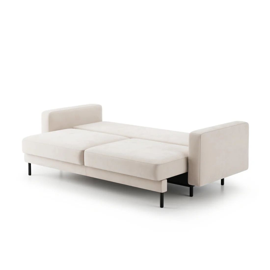🛌 Funcție de Dormit și Depozitare: Alameda se transformă rapid dintr-o piesă elegantă de zi într-un pat confortabil cu o suprafață de 198 x 142 cm. Include o ladă de depozitare generoasă, soluția perfectă pentru organizarea eficientă a lenjeriei.