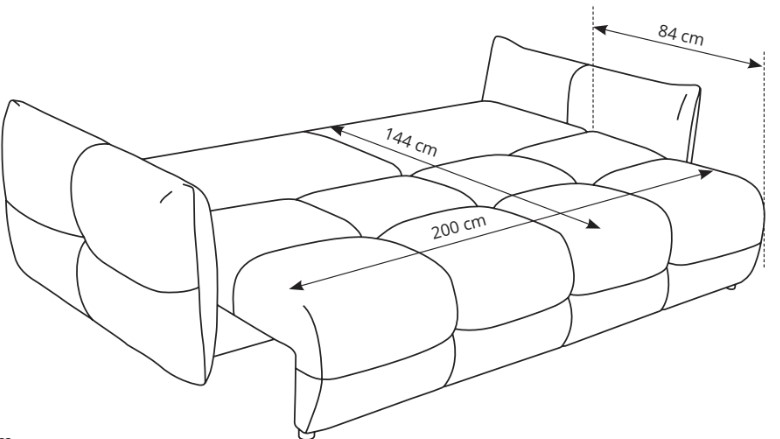 - Zona de dormit: 144 cm x 200 cm