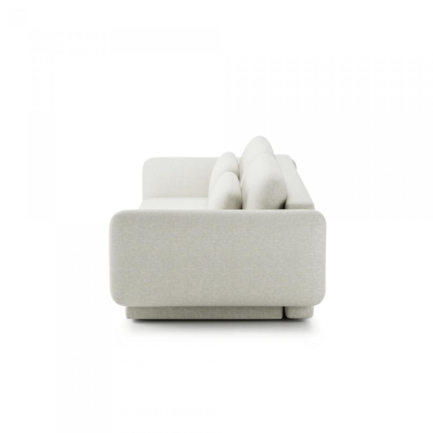 Ebony este o canapea extensibilă care impresionează prin designul modern și forma atent lucrată. Pernele moi, liniile ușor curbate și lateralele subțiri îi conferă un aspect aerisit, fiind ideală atât pentru livingurile spațioase, cât și pentru interioarele mai compacte.