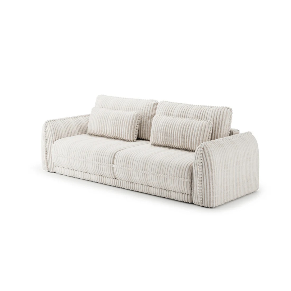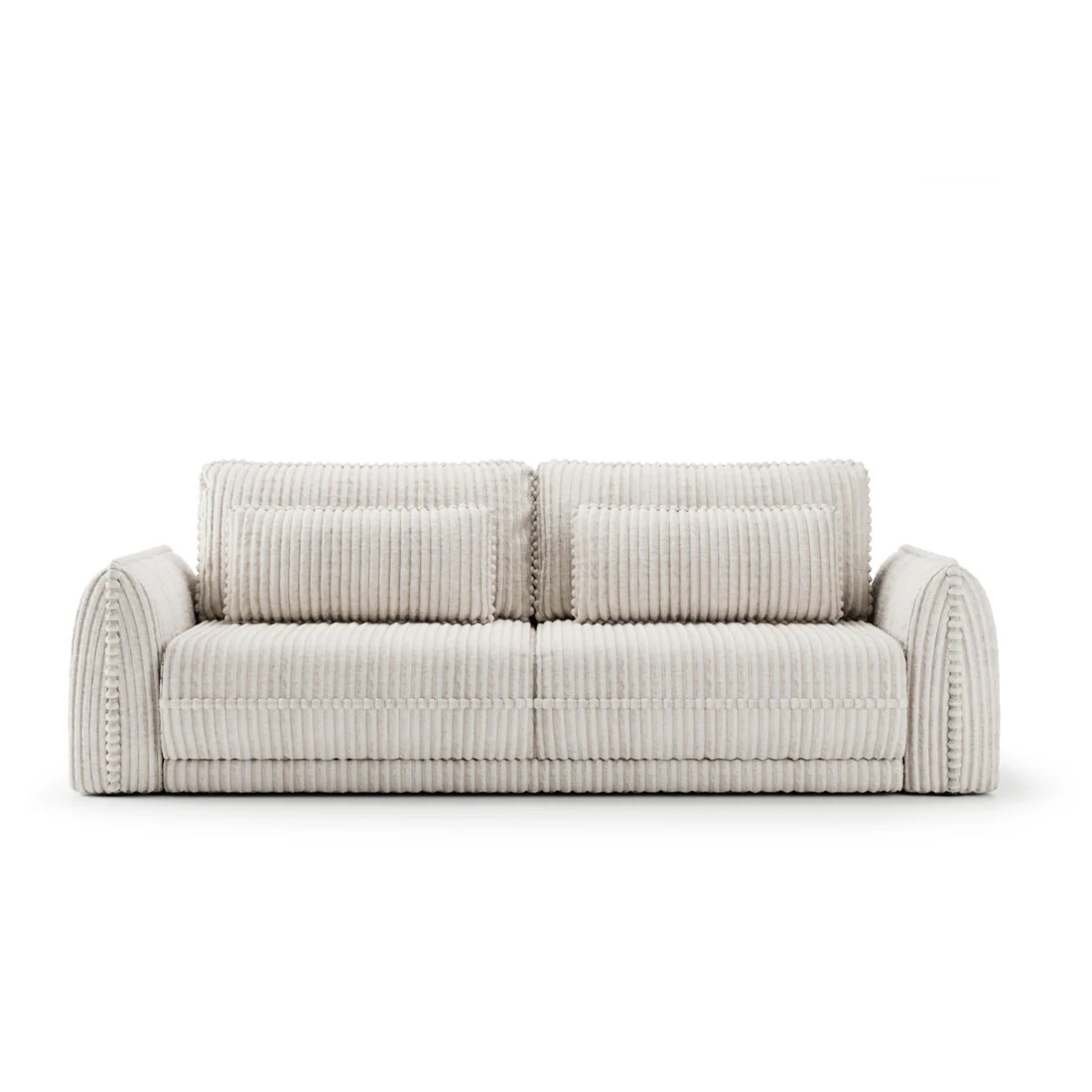 🛋️ Design Modern cu Cotiere Largi: Forma sa simplă, dar impunătoare, este accentuată de cotierele masive, care adaugă un plus de stabilitate vizuală și confort.