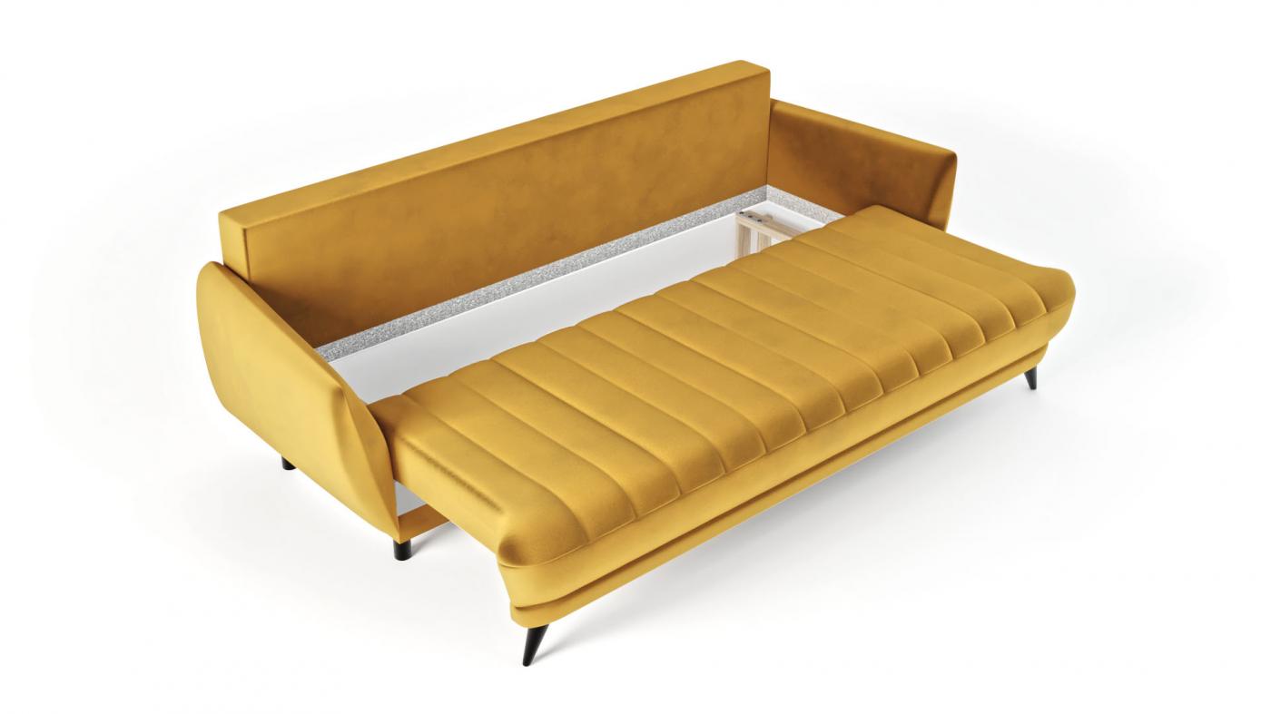 ROY este o combinație de design contemporan cu o atingere retro artistică. Stilul său poate completa un living modern, un interior istoric sau chiar un studio de artă. O canapea cu trei locuri (zona de dormit: 142cm x 200cm), în afară de valorile estetice, vor extinde funcționalitatea interiorului dvs. cu un loc confortabil de dormit.