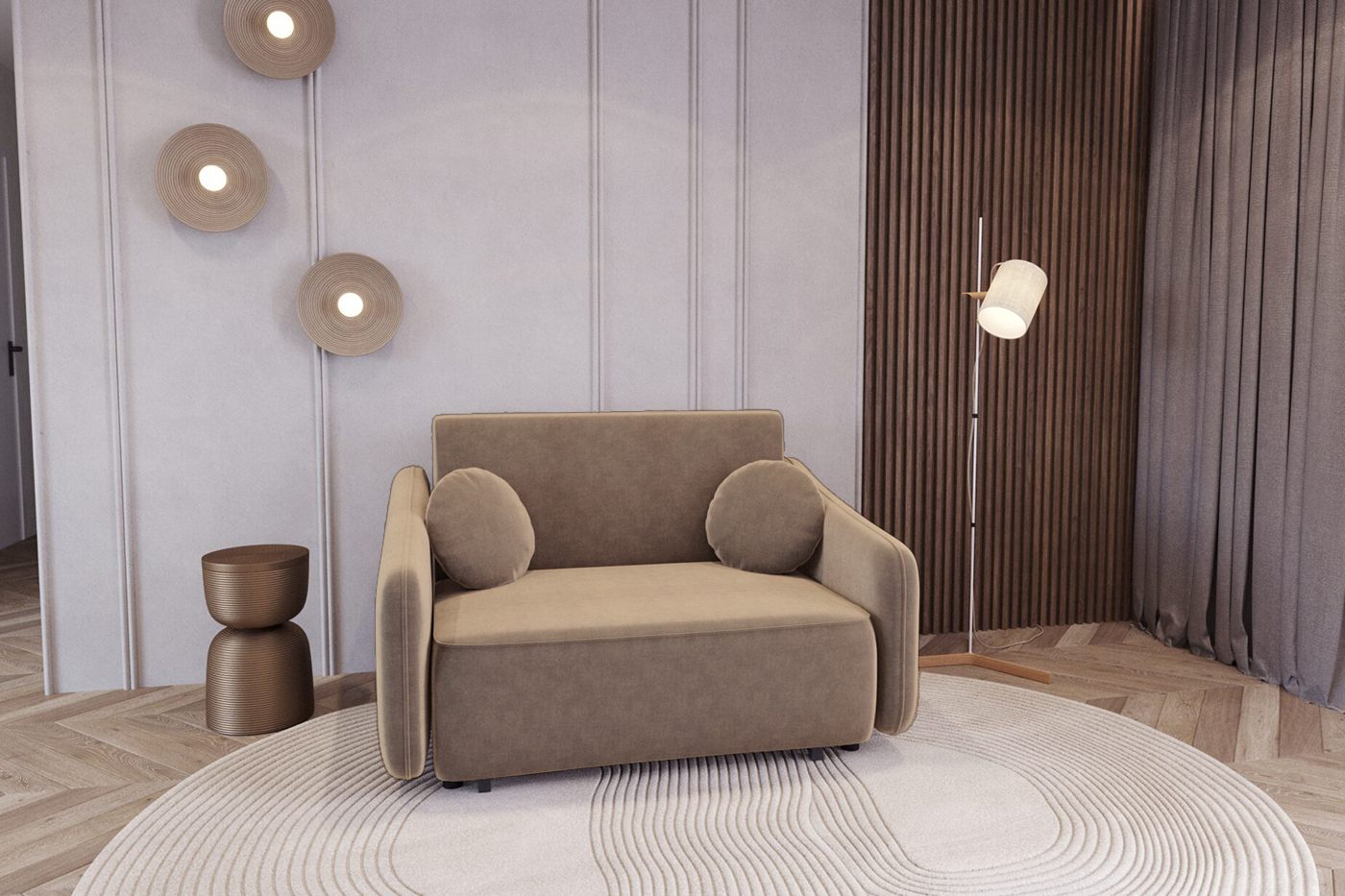 Modelul este o soluție ideală pentru cei care caută un loc confortabil de odihnă în spații limitate, oferind versatilitate maximă: