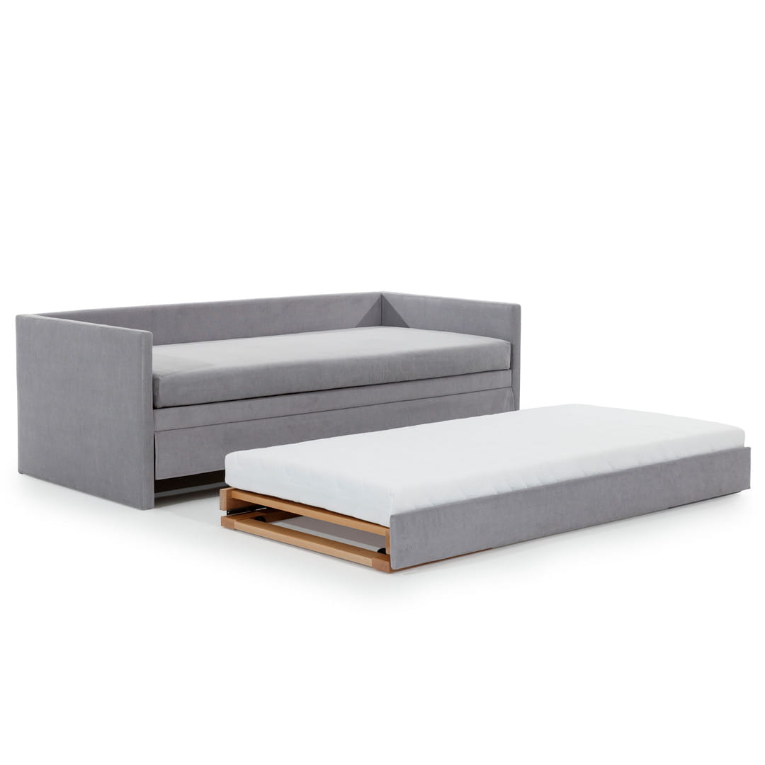 🔄 Configurare Versatilă: Cea de-a doua saltea este așezată pe un cadru pliabil, autonom. Acest element elegant, pe picioare de lemn, poate fi mutat liber în alte camere ca pat de o persoană separat sau poate fi utilizat împreună cu canapeaua pentru a crea un pat dublu de 160x200 cm.