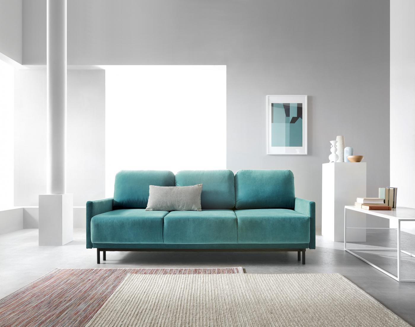 Canapeaua extensibilă Solo este o piesă de mobilier funcțională care se încadrează perfect în estetica interioarelor moderne. Produsul este păstrat într-o formă simplă, minimalistă, pe care o puteți configura singuri - există multe culori și tipuri de țesături din care puteți alege pentru noua canapea.