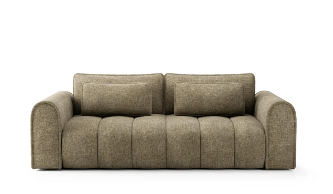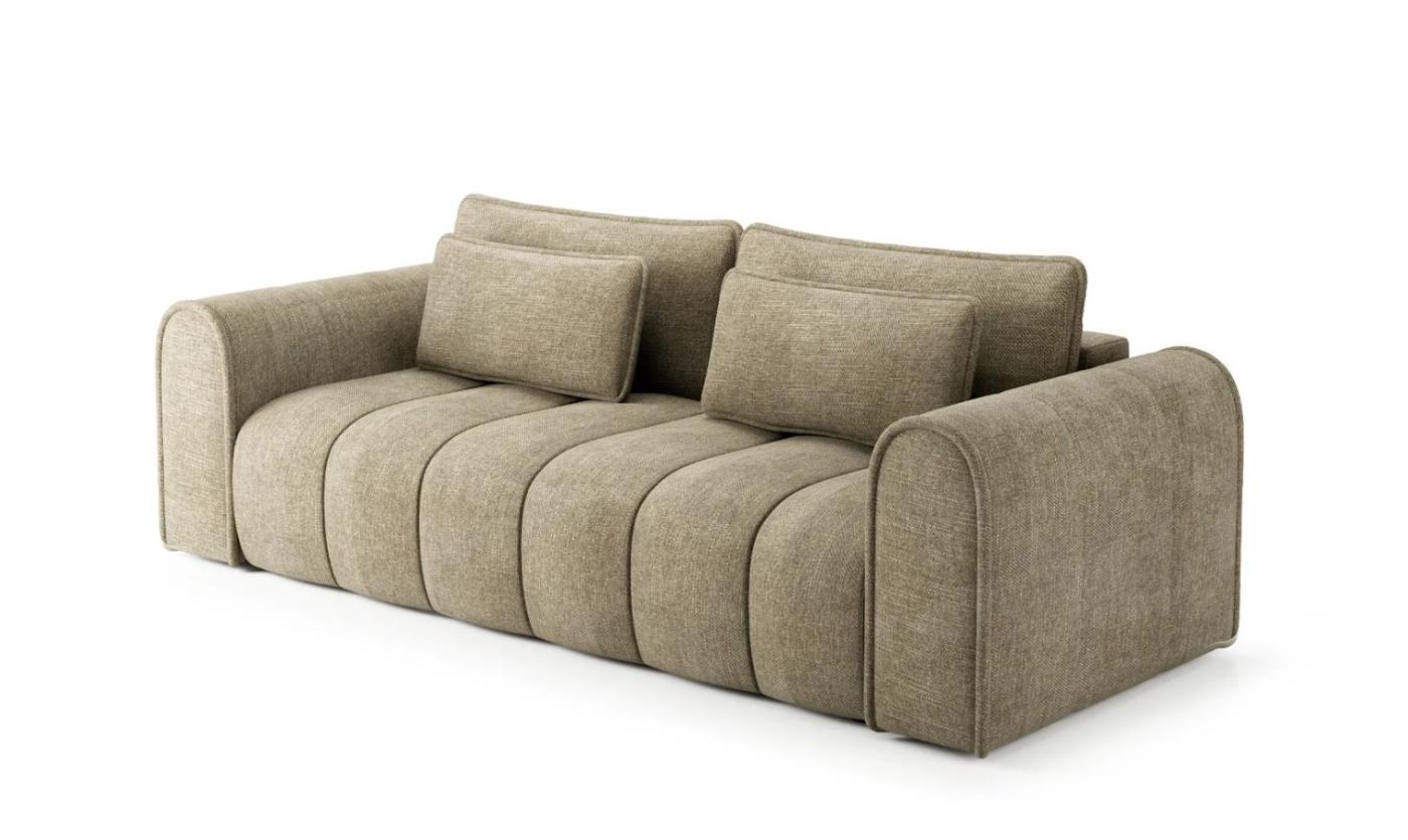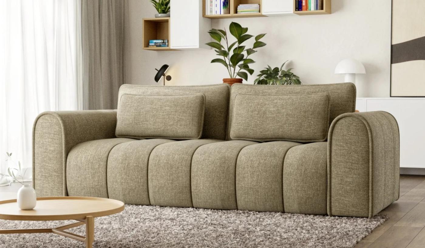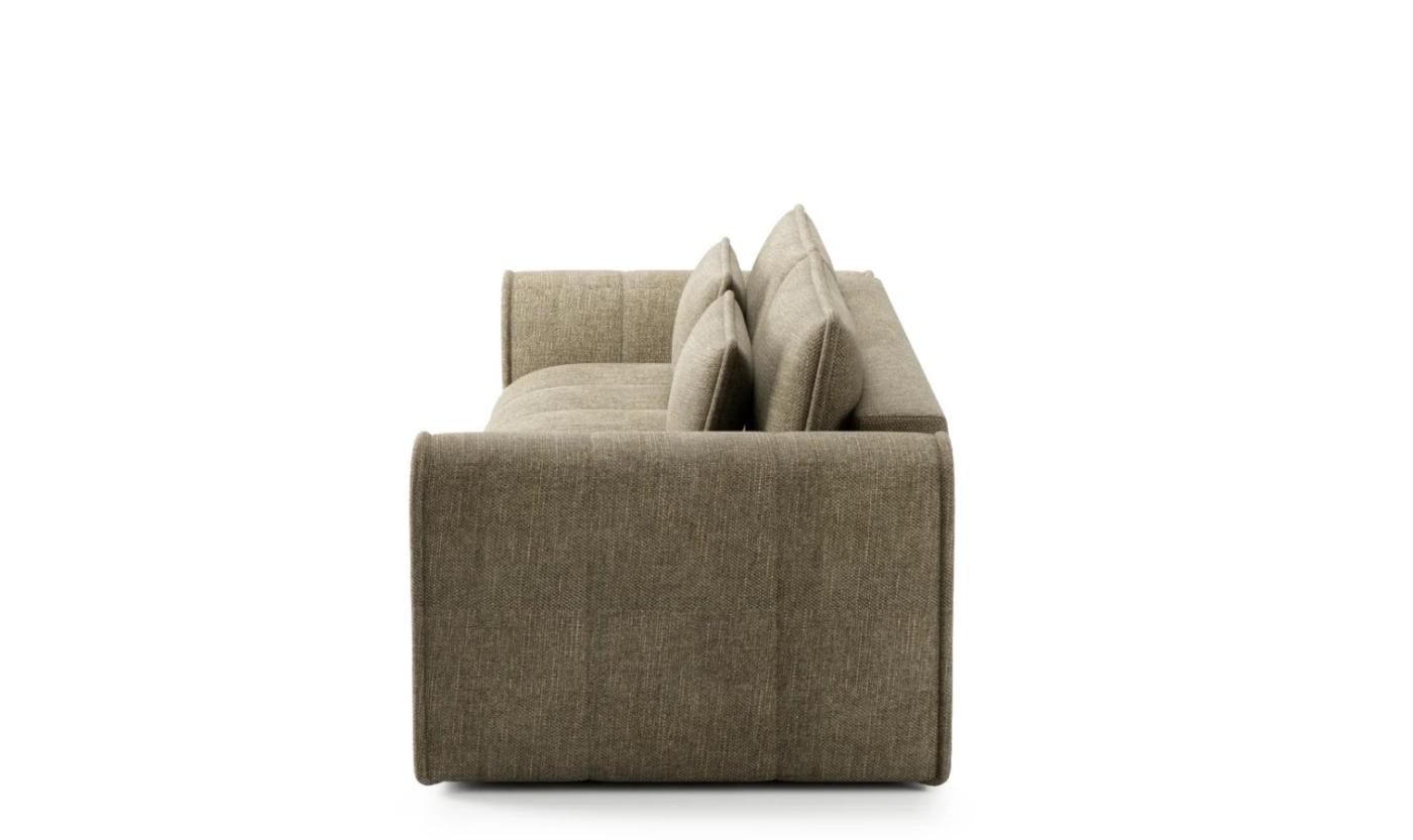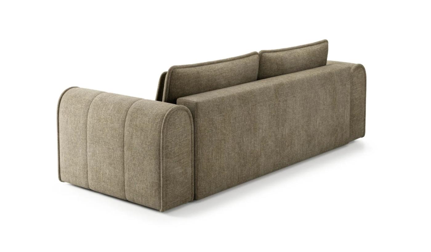 Această canapea masivă impresionează prin contururile sale rotunjite și cusăturile verticale rafinate, aducând o notă de eleganță și moliciune oricărui living spațios:
