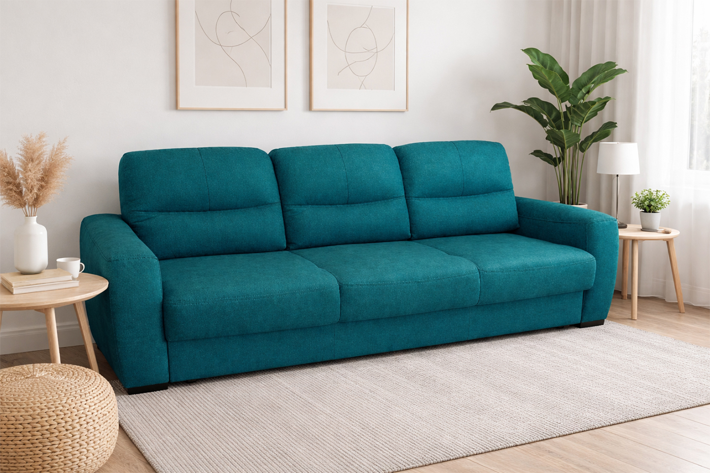 🛌 Funcție de Dormit DL PLUS: Canapeaua de 3 locuri este dotată cu un sistem de extensie performant, transformându-se într-un pat generos de 145 x 190 cm. Este ideală pentru utilizarea zilnică ("seara de seară"), oferind un suport similar unui pat matrimonial.