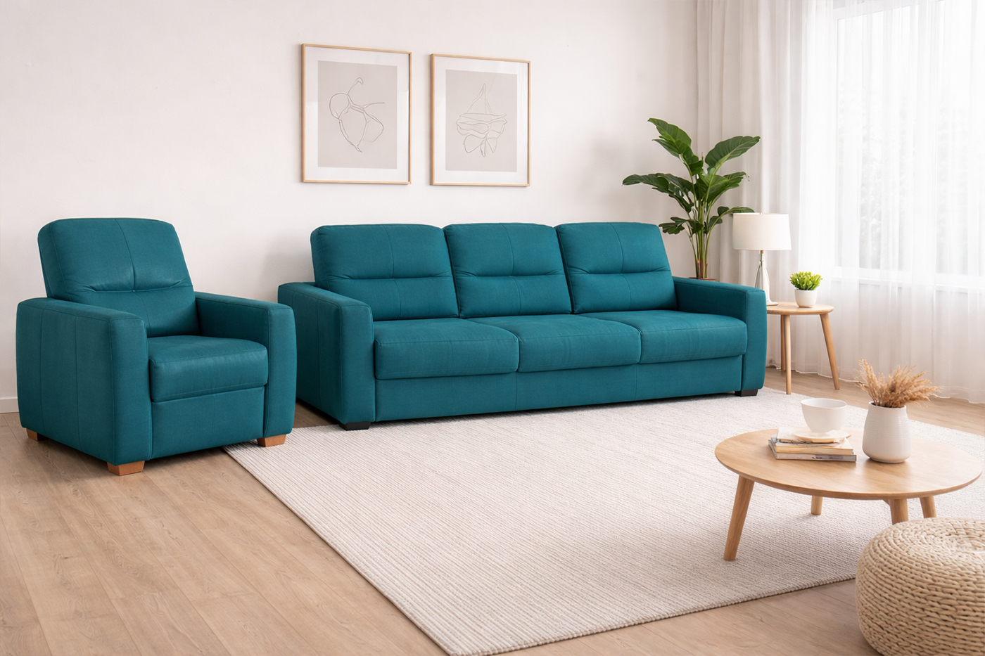 ✨ DISPONIBILITATE: Set Canapea + Fotoliu | Culoare Turcoaz (Stofă Indico - 118).