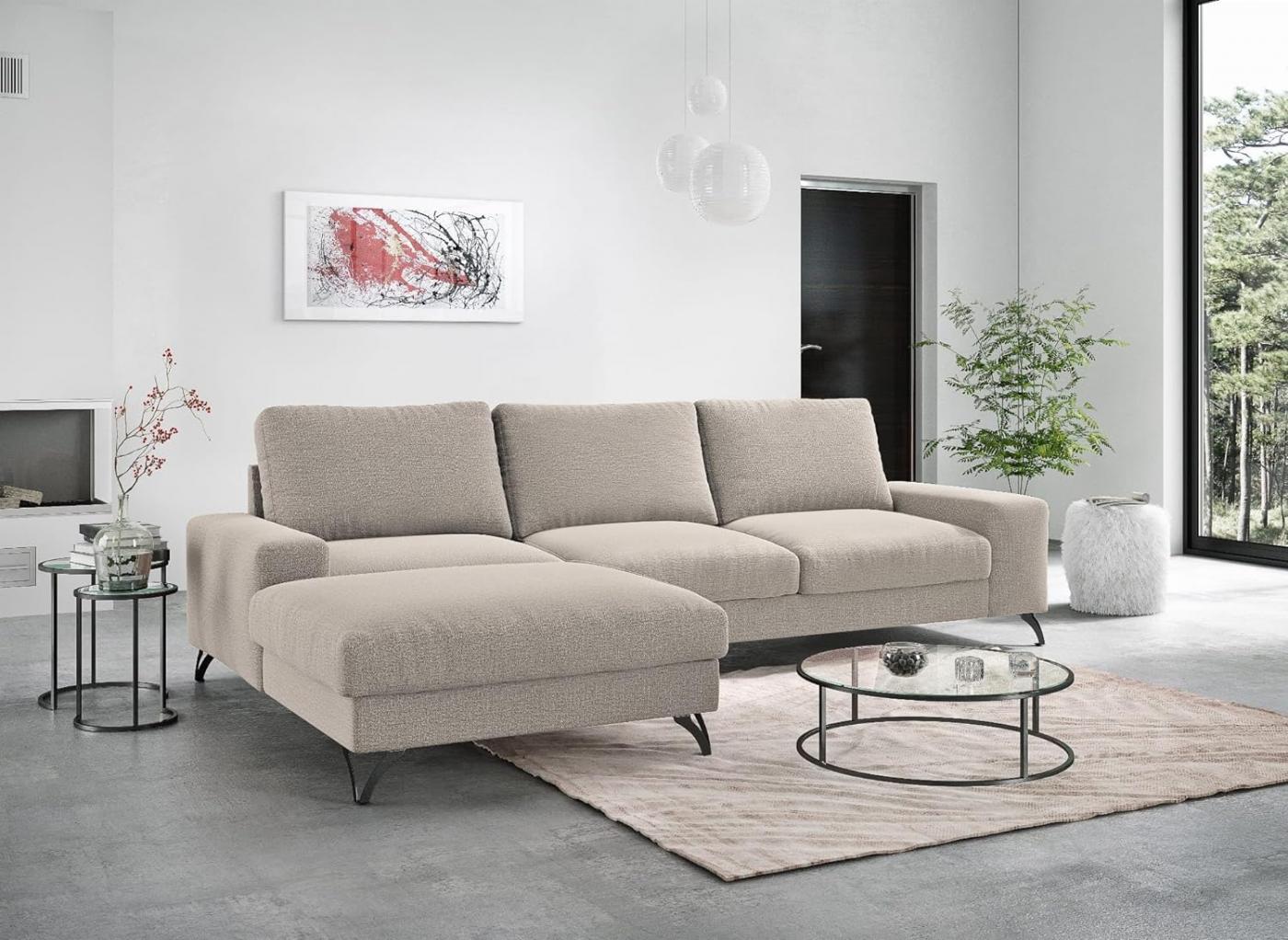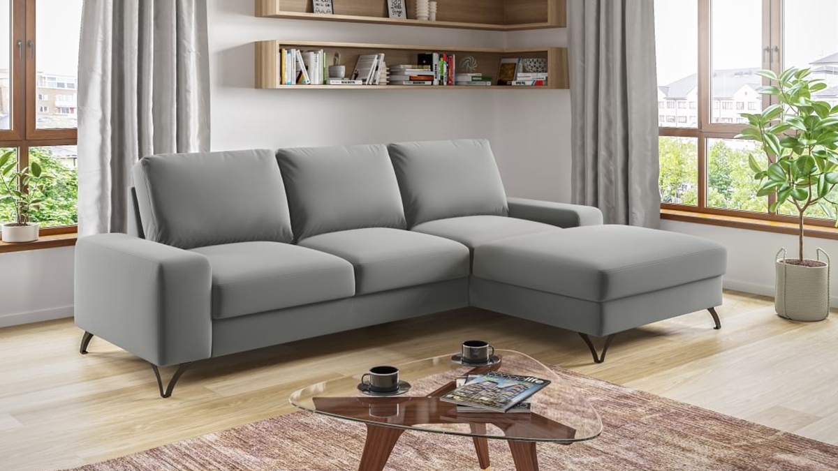 Extrem de confortabil și cu multe opțiuni de configurare. Ca piesă de mobilier modulară, Flaven este disponibil în mai multe dimensiuni. Vă prezentăm acest model ca o canapea de colț închisă, cu un pouf spațios și o cotieră pe o parte. Flaven farmecă prin forma sa frumoasă și picioarele delicate care îi conferă lejeritate.