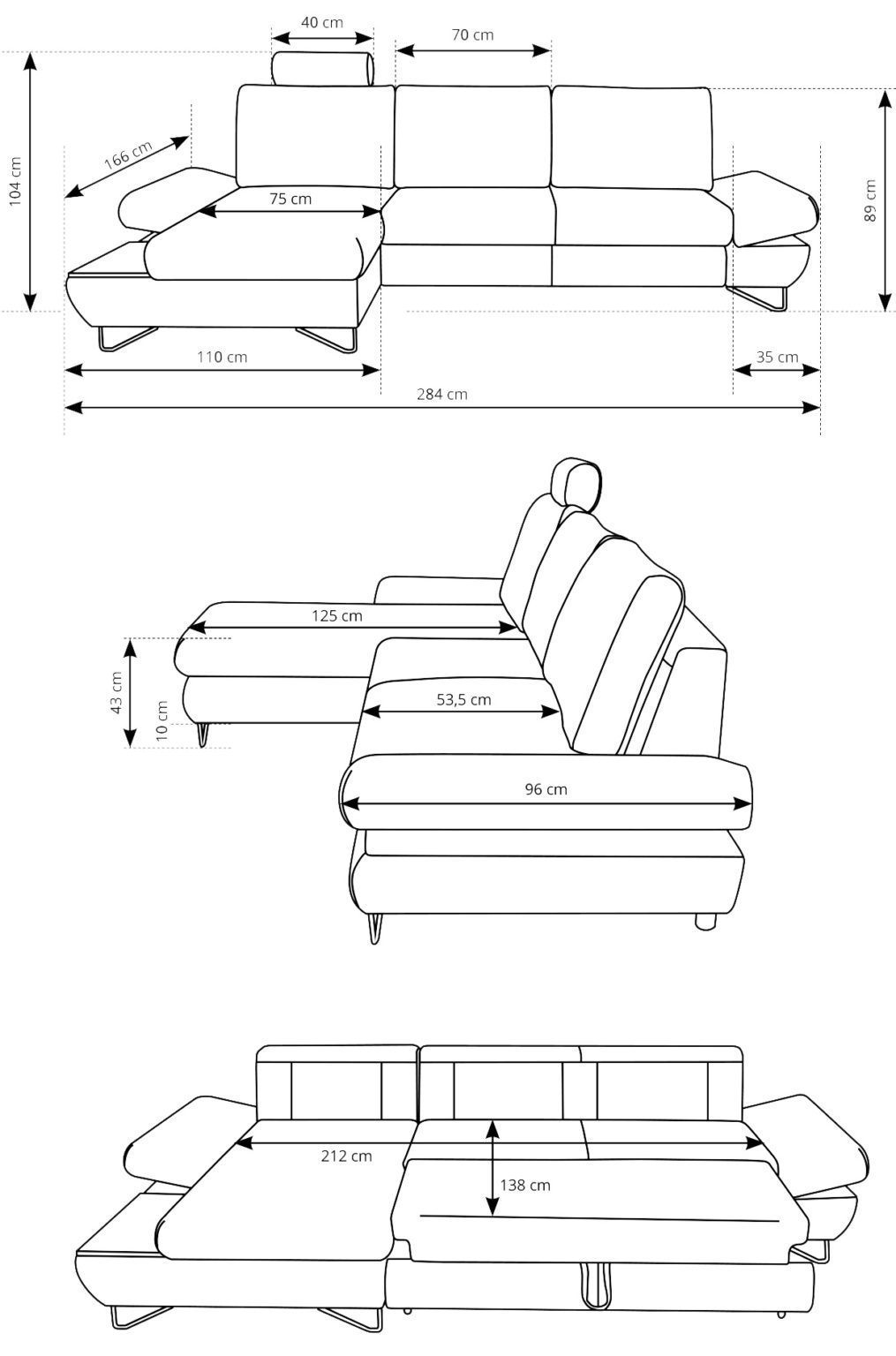 - Lățime: 284 cm