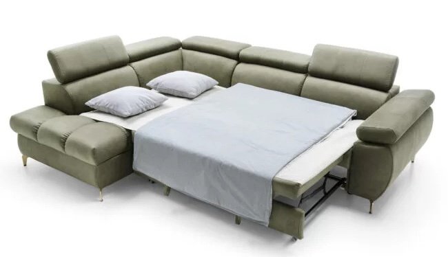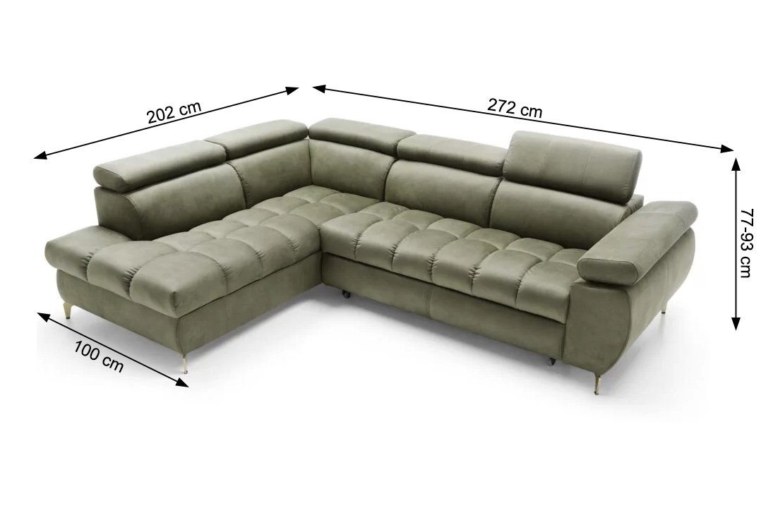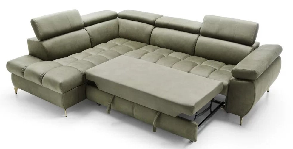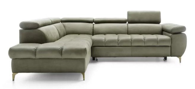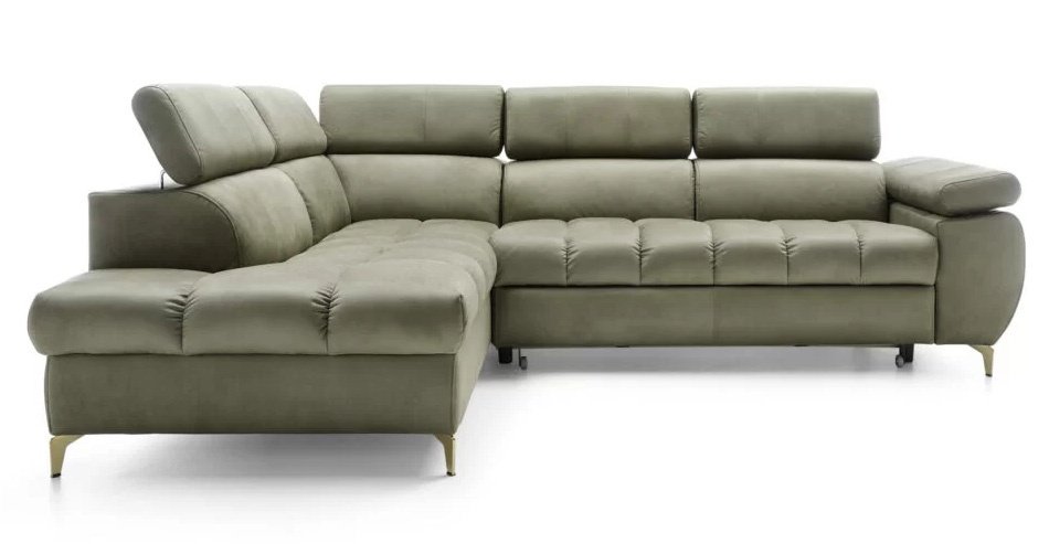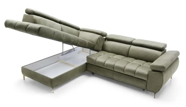 Colțul Lugano va completa perfect interioarele cu o amenajare modernă. Mobilierul a fost realizat cu atenție la cel mai mic detaliu. Matlasarea de pe șezut conferă colțarului un caracter unic. Spătarul și șezutul sunt umplute cu arcuri ondulate, cunoscute pentru rezistența lor ridicată, și spumă poliuretanică extrem de flexibilă, care vă va oferi un confort de utilizare de neegalat. Un element suplimentar care merită atenție sunt tetierele reglabile, permițându-vă să luați o poziție confortabilă și să oferiți sprijin pentru gât. Colțarul are o funcție de dormit care va transforma camera de zi într-un dormitor seara. În plus, mobilierul este dotat cu o ladă de depozitare pentru lenjerie de pat, care poate fi folosită și ca spațiu suplimentar de depozitare în locuința noastră. Structura este așezată pe picioare metalice înalte, care facilitează menținerea curată a mobilierului.