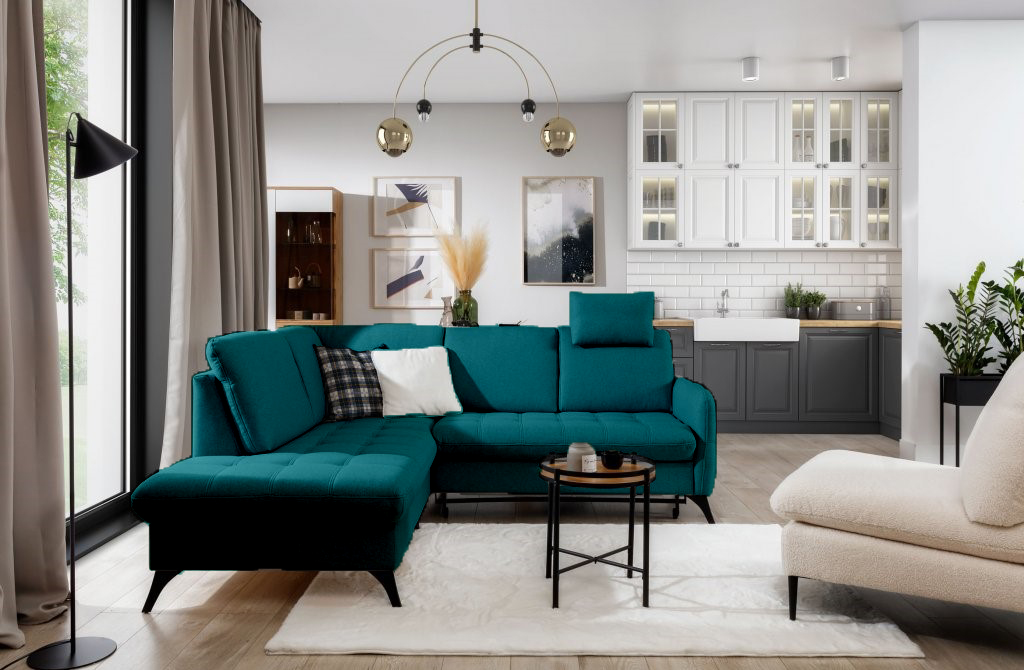 ✨ DISPONIBILITATE: Culoare Turcoaz (Stofă Castel - 75) | Orientare: Colț Stânga.
