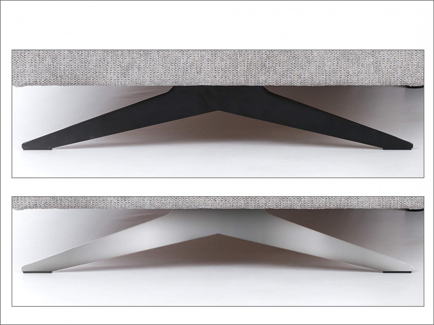 Picioarele metalice pot fi alese din două nuanțe de culoare - negru sau argintiu. Și puteți alege și forma picioarelor - o litera V răsucită în mijloc sau una simplă în colțuri.