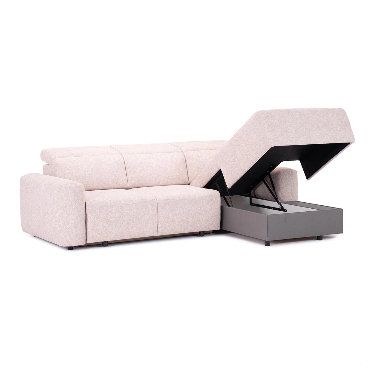 Șezutul canapelei, realizat din segmente dreptunghiulare, este prevăzut cu un spătar de formă similară, astfel încât unul pare a fi o extensie lină a celuilalt. Am adăugat cotiere simple întregului, conferind canapelei de colț un aspect excepțional de coerent. Minimalist, dar deloc plictisitor! Elementul care adaugă o notă surprinzătoare de eleganță lui Merano este tetiera reglabilă. Aceasta nu doar că oferă canapelei un caracter original, dar și sporește considerabil confortul utilizării. O puteți ajusta cu ușurință pentru a vă relaxa corpul cât mai bine posibil. Așadar, întindeți-vă și relaxați-vă capul și spatele obosit.