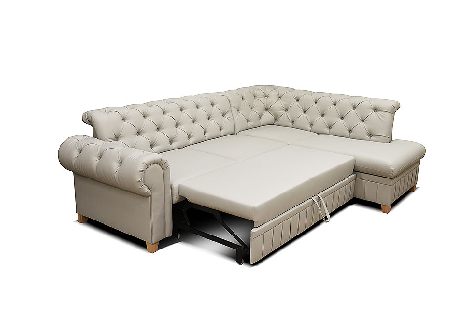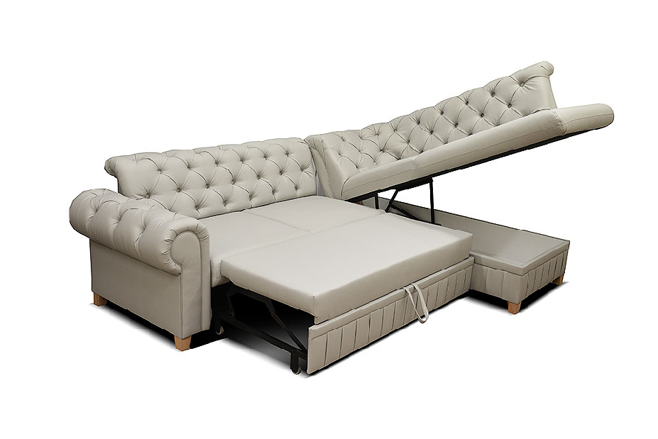 Acest colțar este o soluție completă de mobilare, combinând spațiul generos de relaxare cu utilitatea practică a unui pat de dormit: