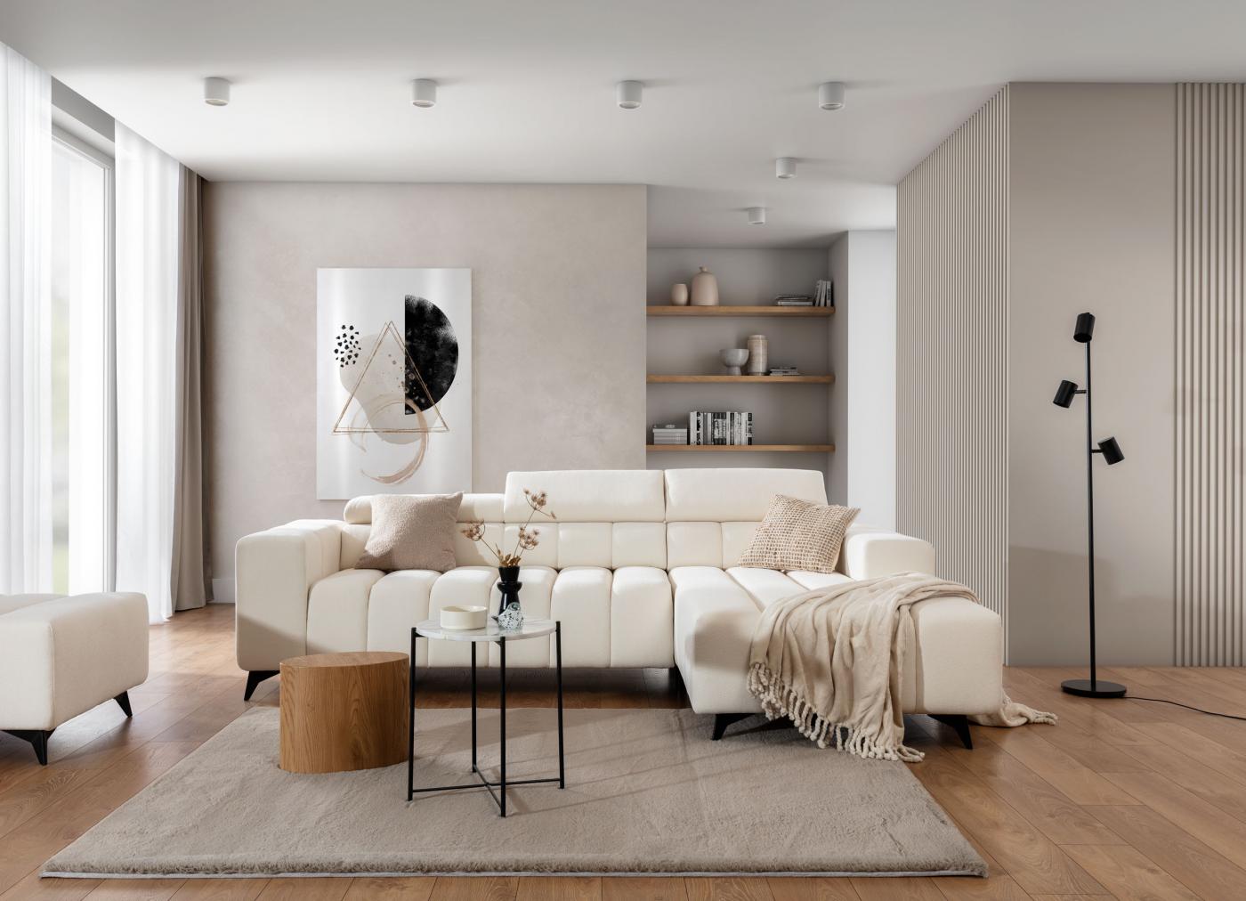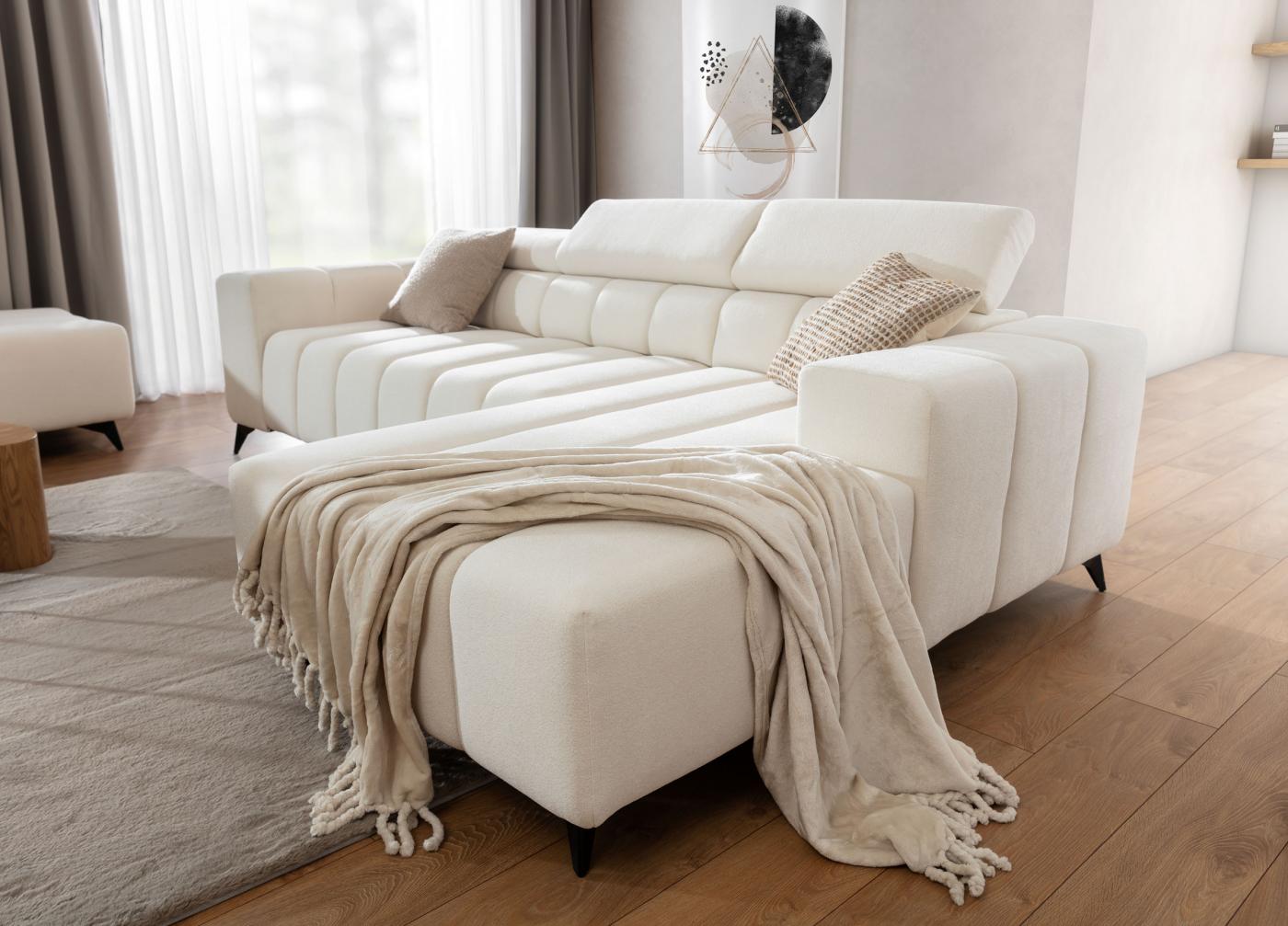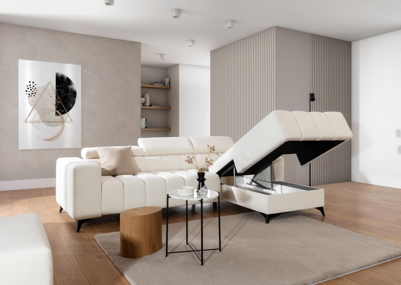 Set canapea de lux Ragusso cu funcție de pliere și spațiu de depozitare. Se caracterizează nu, numai printr-un model și cusături moderne, ci și prin calitate și procesare superioară. Setul de scaune are tetiere reglabile pentru confortul dumneavoastră maxim. După desfacerea canapelei, se creează o suprafață de dormit de 136 x 220 cm, excelentă pentru dormitul ocazional. Spațiul de depozitare oferă suficient loc pentru lucrurile tale. Spătarul canapelei este și el tapițat, ceea ce îi permite să fie amplasat și în mijlocul camerei. O selecție mare de țesături de tapițerie vă permite să personalizați setul de canapele în funcție de dorințele dumneavoastră. Desigur, se poate alege varianta dreapta sau stânga.