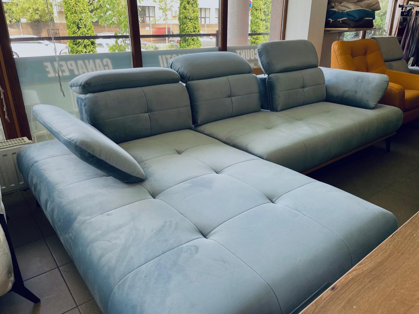 ✨ DISPONIBILITATE: Culoare Albastru Cer (Stofă Basel - 06) | Orientare: Colț Stânga.