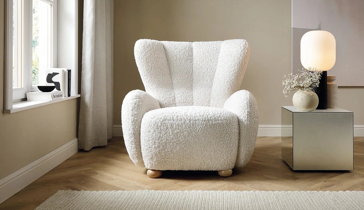 CIRO - Fotoliul spectaculos și confortabil este un tribut adus designului anilor 1990. Formele rotunjite, moi, țesătura structurată, picioarele contrastante din lemn vor oferi oricărui interior o atmosferă confortabilă. Fotoliul arată grozav.