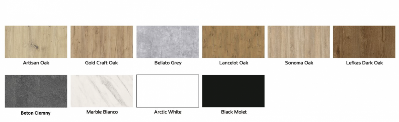✨ DISPONIBILITATE: Culoare Stejar Închis (Dab Lefkas) cu picioare Negre.