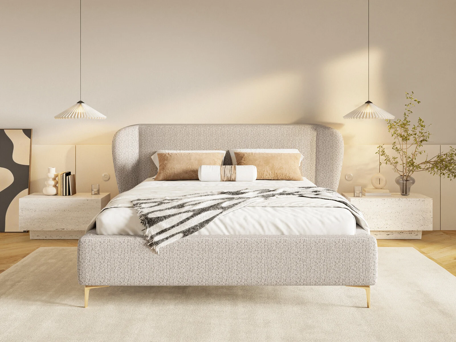 Patul este disponibil în mai multe dimensiuni și variante de culori. Se poate comanda în diferite dimensiuni: 140/160/180 x 224 cm. Potrivit pentru un apartament sau o casă elegantă. Puteți alege culoarea patului dintr-o gamă largă de țesături.