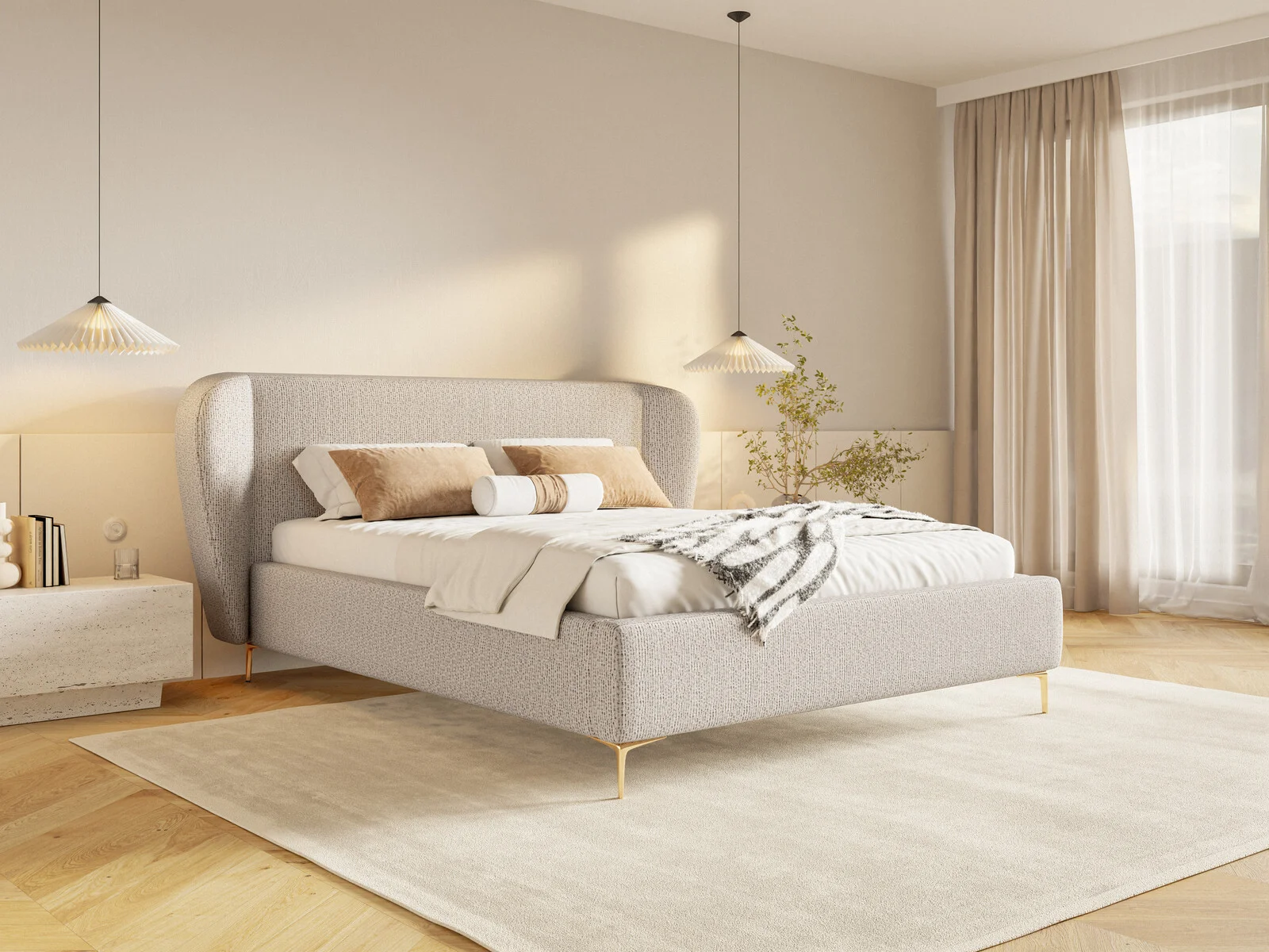 Patul este disponibil în mai multe dimensiuni și variante de culori. Se poate comanda în diferite dimensiuni: 140/160/180 x 224 cm. Potrivit pentru un apartament sau o casă elegantă. Puteți alege culoarea patului dintr-o gamă largă de țesături.
