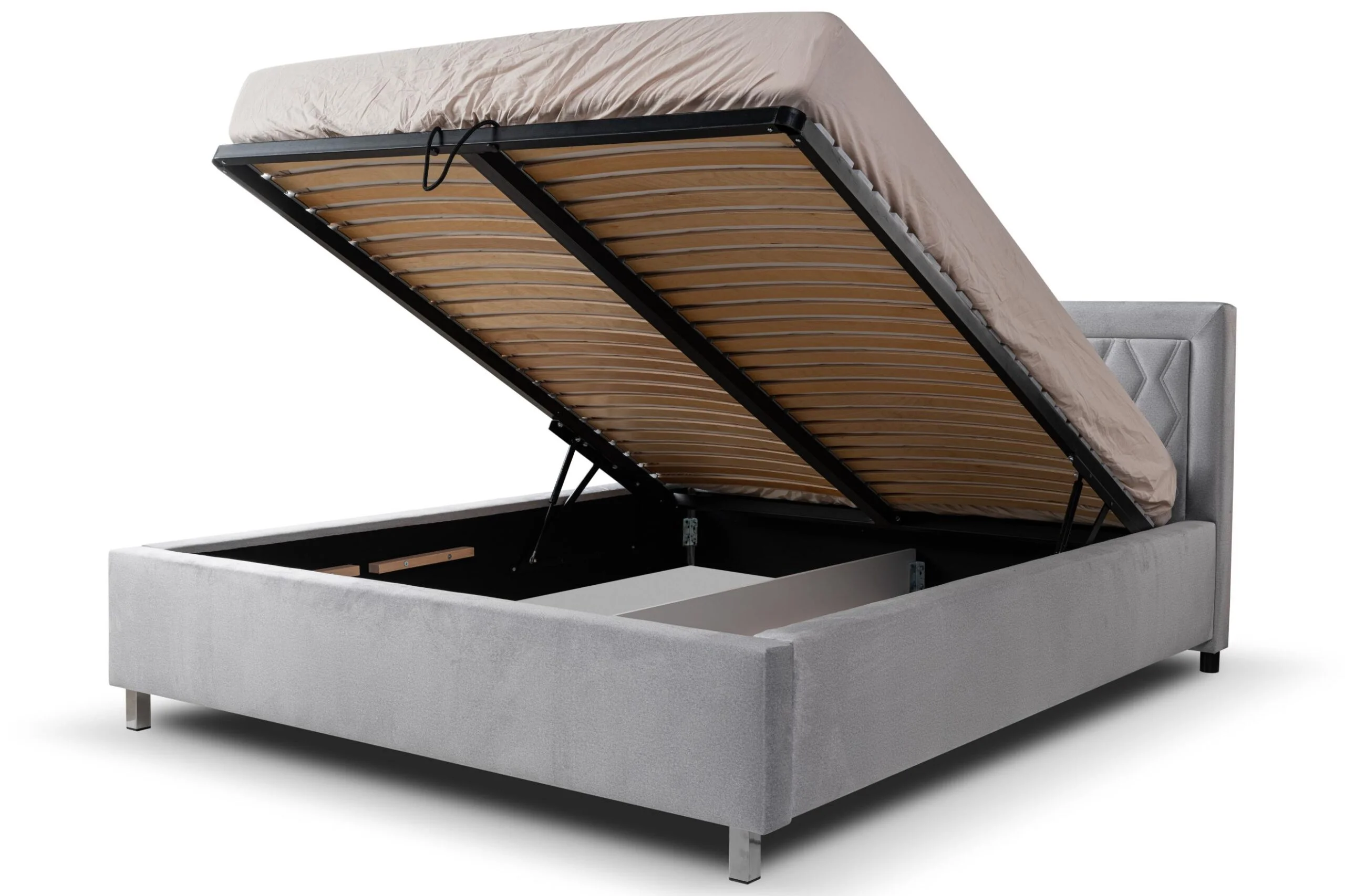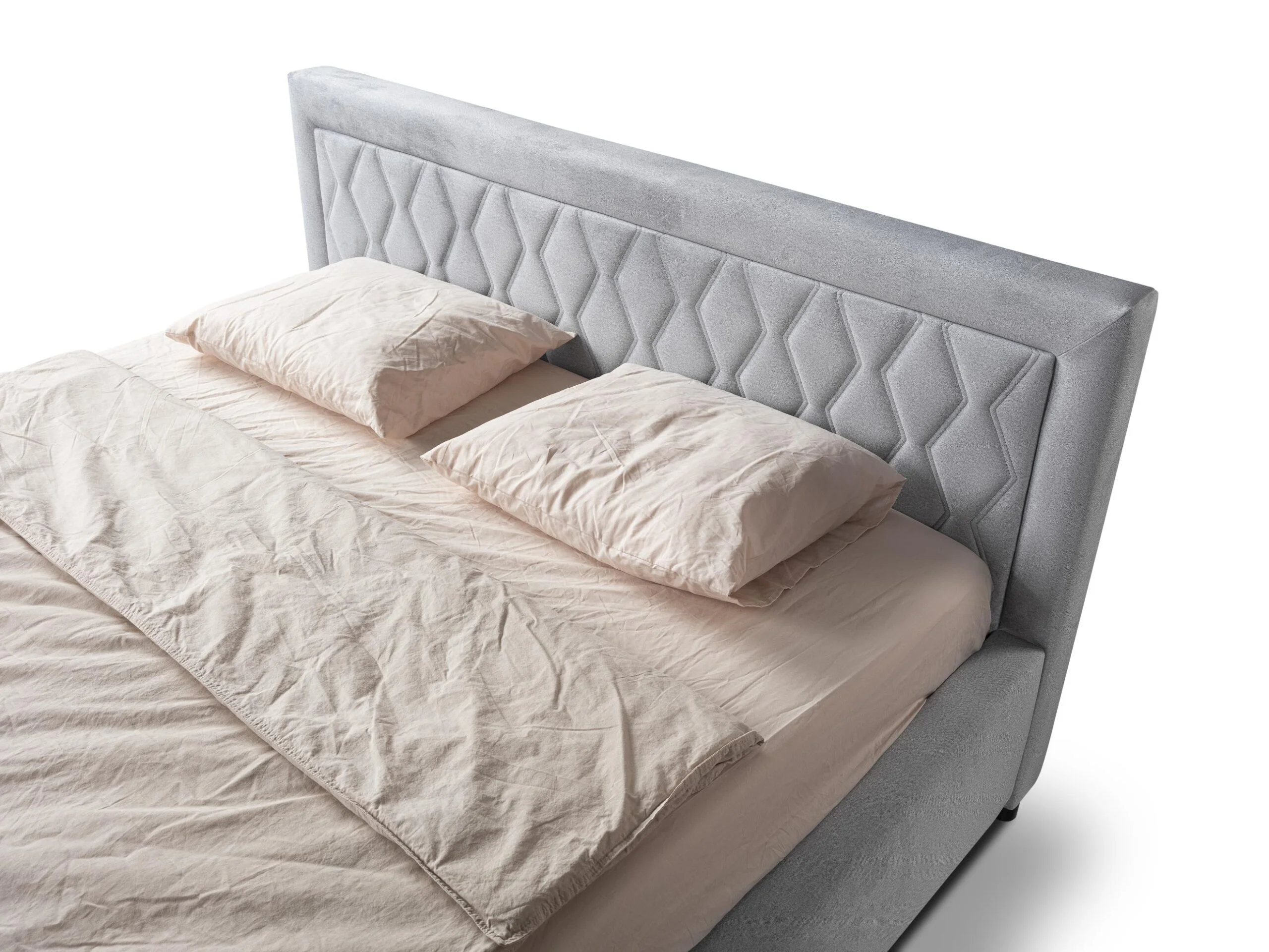 Patul este disponibil în mai multe dimensiuni și variante de culori. Se poate comanda în diferite dimensiuni: 140/160/180 x 220 cm. Potrivit pentru un apartament sau o casă elegantă. Puteți alege culoarea patului dintr-o gamă largă de țesături.