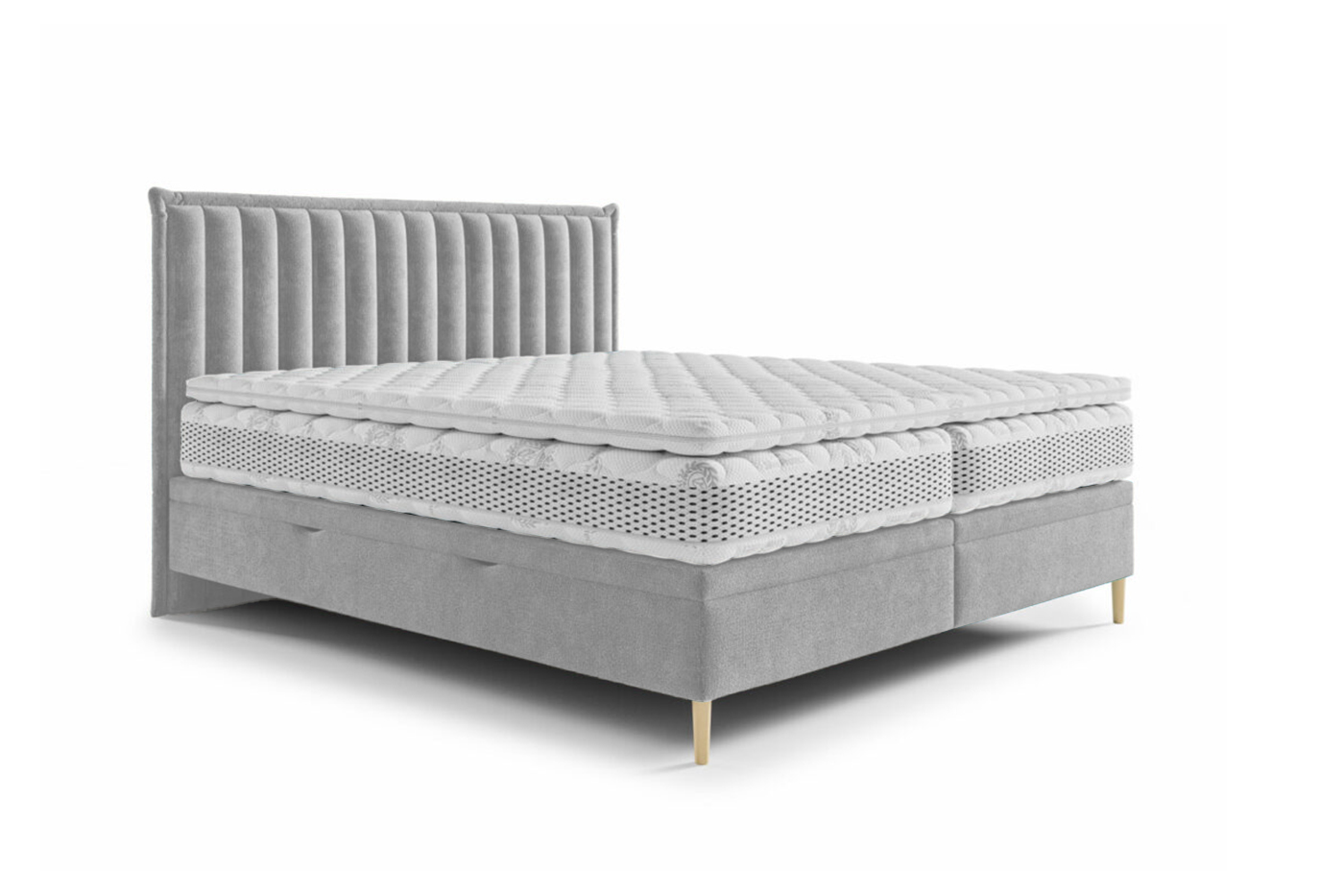- Cutie de depozitare: Patul este echipat cu o cutie de depozitare de 26 cm înălțime, dotată cu lifturi cu gaz și un cadru robust acoperit cu țesătură anti-alunecare. Acest compartiment oferă un spațiu practic pentru organizarea eficientă a lenjeriei de pat sau altor obiecte necesare.