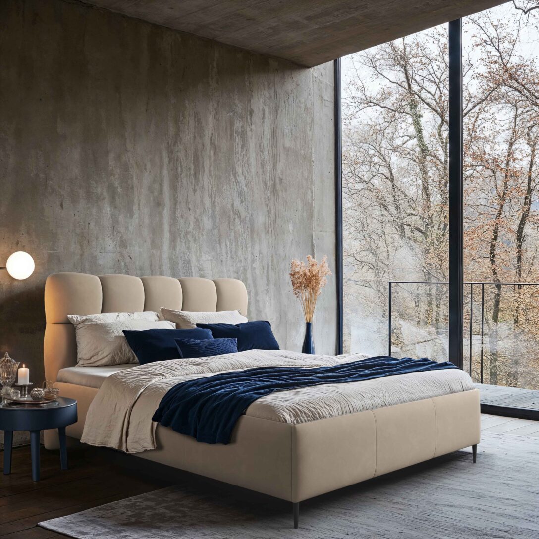 Tapițeria moale și plăcută la atingere oferă un confort autentic, contribuind la o atmosferă relaxantă în spațiul de odihnă. Modelul Novu se evidențiază prin picioarele înalte de 12 cm, care creează un aspect aerisit și permit o întreținere ușoară a zonei de sub pat.