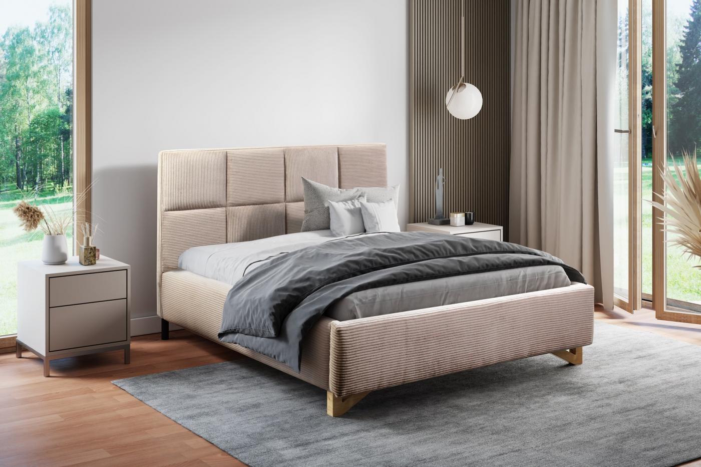 Patul este disponibil în mai multe dimensiuni și variante de culori. Patul se poate comanda pe diferite dimensiuni 140/160/180 x 220 cm. Potrivit pentru un apartament sau o casă elegantă. Puteți alege culoarea patului dintr-o gamă largă de țesături.